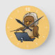 Funny Owl Conductor Cartoon Round Clock