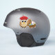 An illustration of a cute cartoon owl wearing a red french beret and holding a brown native basket full of colourful pastel easter eggs. This adorable funny bird design is a gift idea for easter egg hunt lovers and animal lovers.