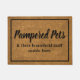 Funny doormat featuring a coir texture print, and the text "pampered pets & their household staff reside here".
