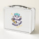 This is a standard metal lunchbox that appears to work just fine. We designed this box ourselves with an uploaded photo and custom text on the front and back. It looks absolutely beautiful except the front of the lunchbox is not centered like it shows in the photo. The print borders don't align with the inset flat part of the box where the preview photo online showed it perfectly centered in there. The back looks nice and centered though.