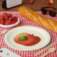 Happy Worm In Red Apple Funny Paper Plates - Custom Colours / or Text - MIGNED Painting Design