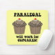 Paralegal. Will work for cupcakes! Funny paralegal shirts and gifts for paralegals who love to eat cupcakes. Hilarious paralegal t shirts and gifts for Christmas, birthdays or any occasion.