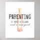Funny poster features parenting quote in distressed font with watercolor bottle of Rosé wine.