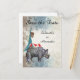Save the date with a funny rhino illustration and Eiffel tower and a feminine lace pattern a perfect vintage style wedding announcement add your personal text to create your own special custom fun and chic themed wedding save the date announcement.