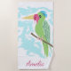 Funny Parrot with Ice cream Drawing Beach Beach Towel. Beach towel for a hot summer on the beach. It has fun drawing of a parrot and an ice cream on the beak. Add your name.