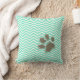 Funny Pawprint on Aquamarine Chevron Cushion