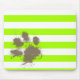 Funny Pawprint on Electric Lime Green Stripes Mouse Pad