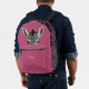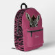 This cute backpack has the image of an adorable striped zebra peeking. The sides and top have a pink and white zebra stripe pattern, while the solid pink pocket has text in silver. You can place your name in the text field, or maybe think of something funny to say about the zebra's predicament. It's up to you!