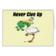 Funny design with a positive note. Never give up has a pelican swallowing a frog who has his hands around the pelican's neck. Funny gift and inspiration for friends and family.