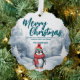 Funny Penguin bird Merry Xmas tree snow Holiday party