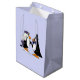 Fun penguin bride and groom wedding original art gift bag. Perfect for weddings and bridal showers. Can also add custom text and change background colour when ordering.