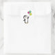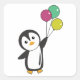 The penguin flies upwards with colourful balloons. Penguins are funny birds that cannot fly unless they fly with balloons. A cute animal for children.