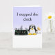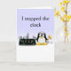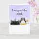 Cute Mother's Day Card with funny penguin smashing a clock on the front with text that says I stopped the clock. Inside left says Now it's Mother's Day every day. Inside right says Happy Mother's Day Mum! I love You. All text can be replaced with your own message.