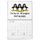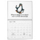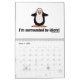 Funny Penguins. Each page has a different graphic cartoon drawing of penguins with funny sayings. Guaranteed to put a smile on your face and make you laugh each month of the year. The Text can be changed / customised. So go ahead, penguin lovers, customise a calendar which you will enjoy all year round with these cute and silly penguins.