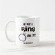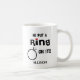 Funny Personalised He put a Ring on it coffee mug with a red heart, a wedding engagement ring with bride to be name.
