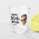 Funny personalized face cut-out photo shot glass for men with the message "happy 60th birthday" and his name. To use only the face, click the button to edit the design and use the "remove background" tool. Alternatively, use any mobile app or editing program and upload a transparent PNG file.