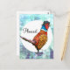 Mr. Pheasant is rushing through business. Hand-drawn watercolor illustration. Customisable text.