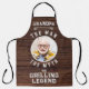 This funny photo design for Grandpa or Dad features their own photo and the words, "Grandpa (or Dad) - The Man, the Myth, the GRILLING LEGEND" in rustic distressed typography on a dark wood background. This apron is perfect for the grandpa, dad, husband, or other man who loves to grill and barbeque - the real grill Master!