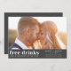 Save the date cards in a modern photo with a funny text design that reads "Free drinks and a wedding on the side". Perfect for the fun couple who can't wait to celebrate at their wedding.