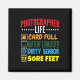 Photographer Life Checklist - Card Full, Battery Exhausted, Dirty Sensor and Sore Feet. Colourful icon art design to add to a photographer's accessories and equipment gear. > Funny idea for a beginning photography student, amateur or professional instructor. > Customisable: Add your own custom name or text.