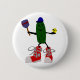 Funny Pickle Holding Pickleball and Paddle 6 Cm Round Badge