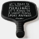 Serve up some witty banter with this customizable funny pickleball paddle! Featuring the clever and cheeky quote: "It's Okay If You Don't Like Pickleball It's Kind Of A Smart People Sport Anyway." This unique, themed paddle can be personalized with a Name, creating the perfect gag gift for every witty pickleball lover and enthusiast. It's a wonderful novelty item that combines competitive performance with intellectual humor, perfect for players who enjoy a good laugh along with their dink shots and volleys.