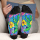 These crew socks are the perfect gift for any pickleball enthusiast! Printed with eco-friendly water-based inks, they feature a signature 360-degree print that wraps your feet in vibrant, pickleball-themed designs. The pattern showcases an array of colourful squares in shades of purple, pink, and green, each square adorned with playful pickleballs in various colours.