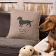 Cute faux burlap design for the Dachshund / Doxie who rules the house. This is his spot on the sofa! Note that the burlap is a printed faux effect (not actual rough burlap). This soft and smooth pillow is available on cotton or polyester fabric or with a durable outdoor treatment suitable for patio / porch bench. The text can easily be customised.