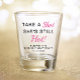 Funny pink and black "Take a Shot She's Still Hot" 30th birthday party shot glass. Add her name, age and the party date.
