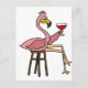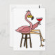Funny Pink Flamingo Drinking Red Wine Postcard