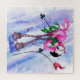 Funny Pink Flamingo Skier - Cartoon Drawing Comic Fun Happy Bird MIGNED