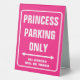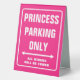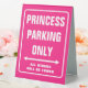 Funny pink princess Parking Only Sign or be towed. Custom Metal Parking Only Sign for business and more. Create your own unique personalised car park signage. Useful notice for private parking lots or garage at school, shop, store, office, restaurant, corporate company, mall, wedding event etc. Neon pink or custom background colour. All others will be towed warning. Modern typography template with arrows. Letters can spaced out or made smaller. Humourous Birthday gift idea for boss, employees, staff, personnel, co worker, colleague, friends, ceo, cfo, manager, lady boss, coworker, mum, dad, husband, wife, teacher, doctor, dentist, shop owner etc. Reversible display.