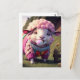 Funny Pink Sheep in a Sweater Chewing Bubble Gum Postcard
