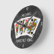 Funny Pinochle King on Black Round Clock