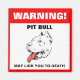 Hilarious Warning Sign "Pit Bull May Lick You To Death" 2-inch square refrigerator magnet. Cool gift for any pitbull terrier lover.