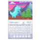 Funny Pixel Gamer Pixelated- Dinosaur Illustration Single Page Calendar; This funny nostalgic design features pixel art of a Dinosaur in nature. There is mountains, fir trees, and clouds in colorful sky. In front pixelated font "START" and "20XX" for beginning the new year and in back pixelated font "GAME OVER" for ending the year, I've used a pop color palette, to give the art a 90s Video Games Aesthetic.