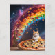 Funny Pizza Cat in Space Rainbow Stairs Postcard