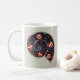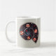 Spiral galaxy mug with an abstract astronomical illustration with galaxy shaped as a snail shell with bright stars and planets resembling beach balls. Ink drawing of a total nonsense, imagining a funny universe. This cool space related astronomical design has a customisable background.