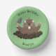 This cute funny pocket gopher is digging with a trowel. Drawn in happy cartoon style.