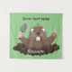 This cute funny pocket gopher is digging with a trowel. Drawn in happy cartoon style.