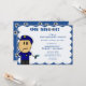 Unique retirement invitation for a police officer. Design has a police policeman holding a gun. The background is gunshots. Easy to customise with your party details.