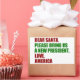 Dear Santa, please bring us a new president. Love, America. Funny political Christmas sticker for an anti Trump democrat. Holiday humour stickers.
