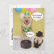 Customisable birthday postcard or invitation with Moses and Cool Cat. You can customise the text balloons. On the back you can customise, and you can change the size of, or delete the small image of Cool Cat.