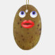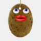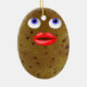 Funny potato cute female character with big lips and blue eyes double sided oval ceramic Christmas ornament