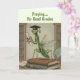 Celebrate in style with this graduation card, featuring a playful praying mantis wearing a graduation cap, holding a certificate, and sitting atop a stack of books. Perfect for graduates with a sense of humor.