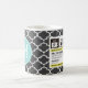 Funny Prescription Coffee Mugs with custom monogram. Write your own prescription! Add your name, your doctor, your favourite coffee and even your own instructions! Make if funny, make it yours! Chalkboard and Quatrefoil Pattern. Add your own custom Monogram! Select your own fonts!
