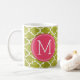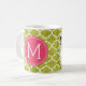 Funny Prescription Coffee Mugs with custom monogram. Write your own prescription! Add your name, your doctor, your favourite coffee and even your own instructions! Make if funny, make it yours! White and Lime Green Quatrefoil Pattern. Add your own custom Monogram! Select your own fonts!