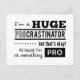 A funny quote on procrastination that reads "I'm a huge procrastinator but that's okay! At least I'm Pro at something." It is a play on the word pro which means professional and how it relates to the starting letters of procrastinator. For the slackers with a sense of humour!