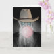 Funny I Got the Promotion announcement greeting card. Don't you dare burst my bubble. I just wanted to let you know I got the promotion. Funny photograph of an old guy wearing a cowboy hat, wire rimmed tinted shades, and blowing a big pink bubble. Art, image, and verse copyright © Shoaff Ballanger Studios, 2022.