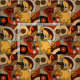 Wonderful funny pug puppy dog is playing the saxophone in this fun original art abstract fabric design.